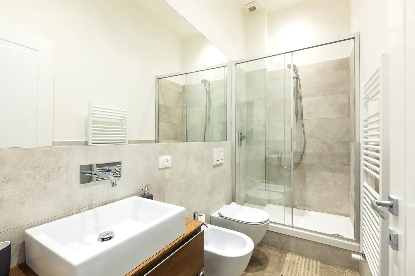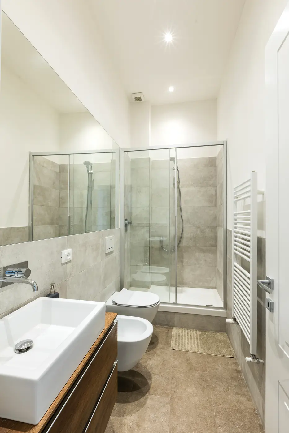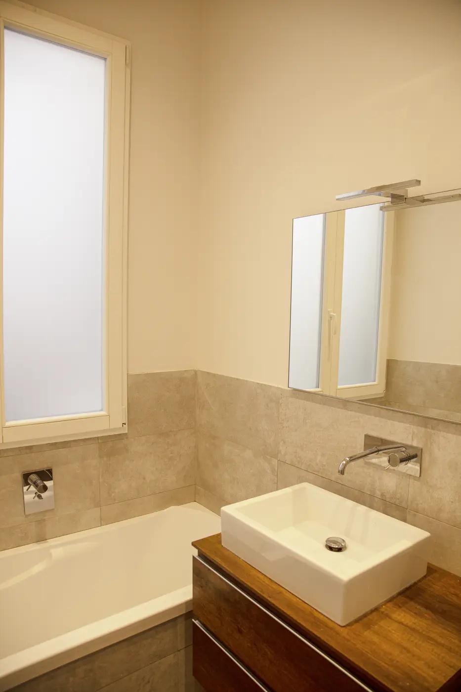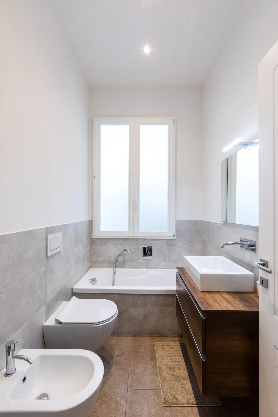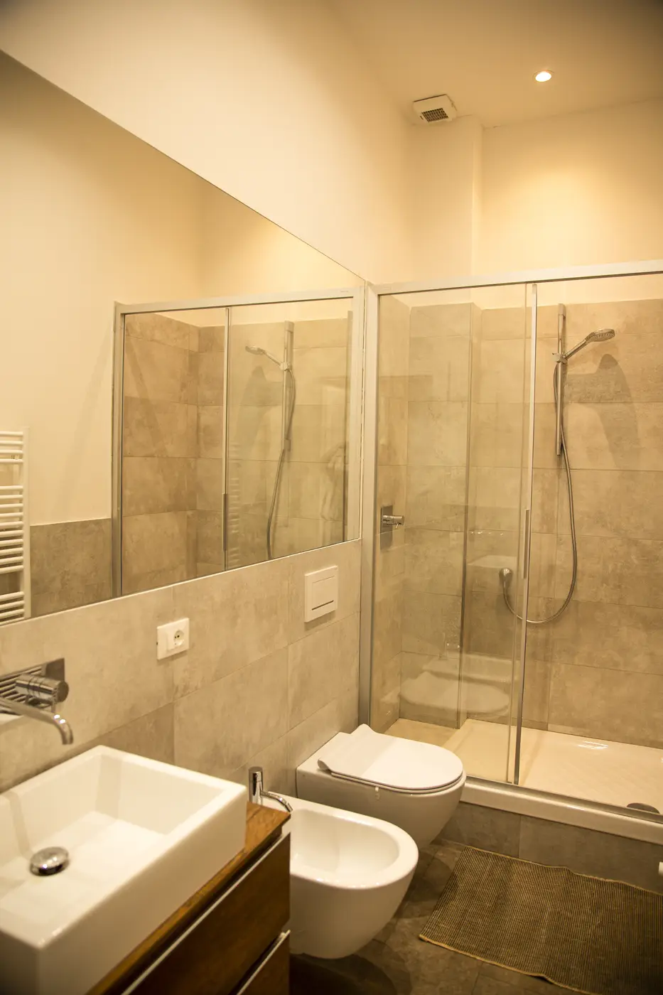 - Secondo bagno in marmo con vasca, lavandino e bidet
