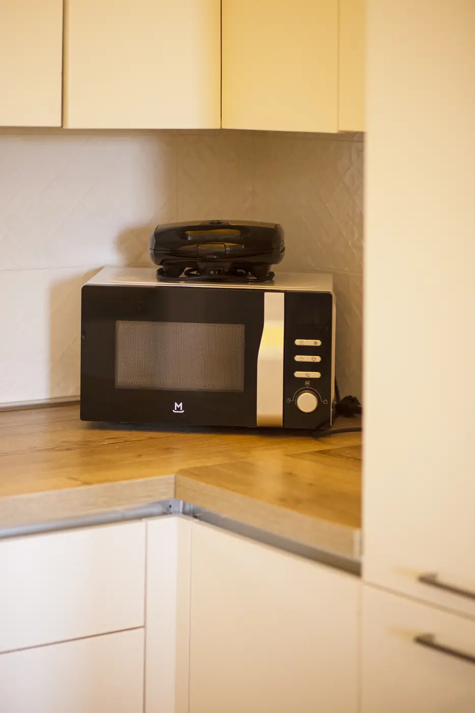 - Cucina completa di stoviglie ed elettrodomestici, con tavolo da pranzo per 4 persone