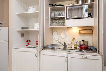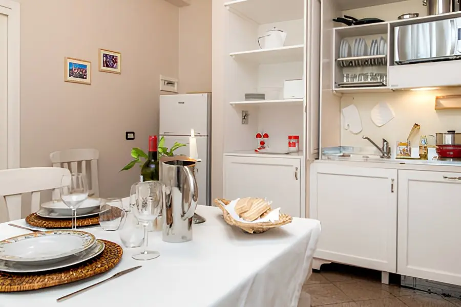 - Funzionale cucina a scomparsa completa di stoviglie ed elettrodomestici
