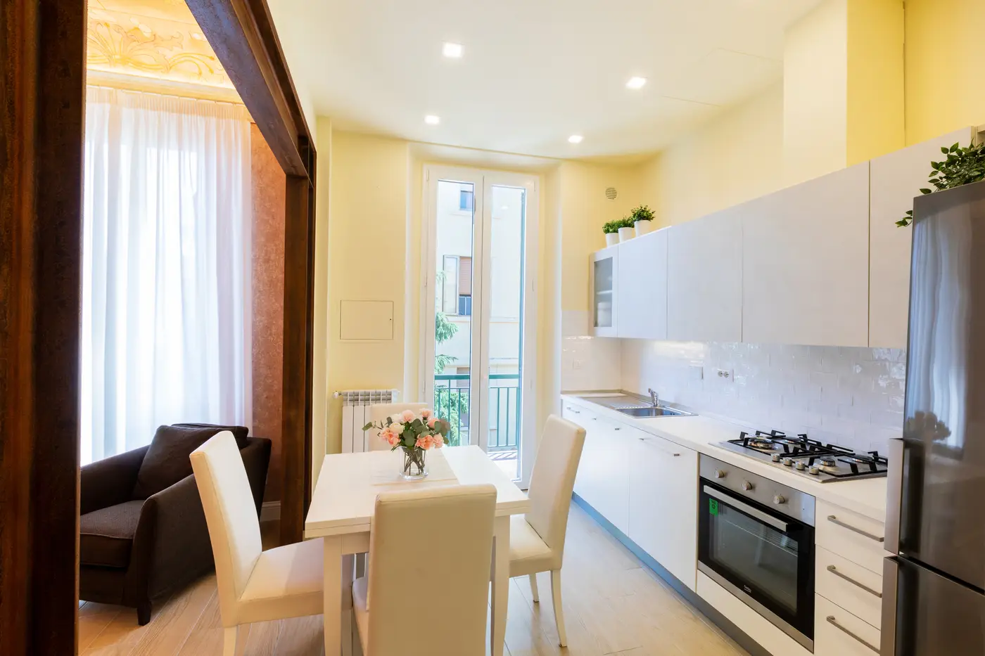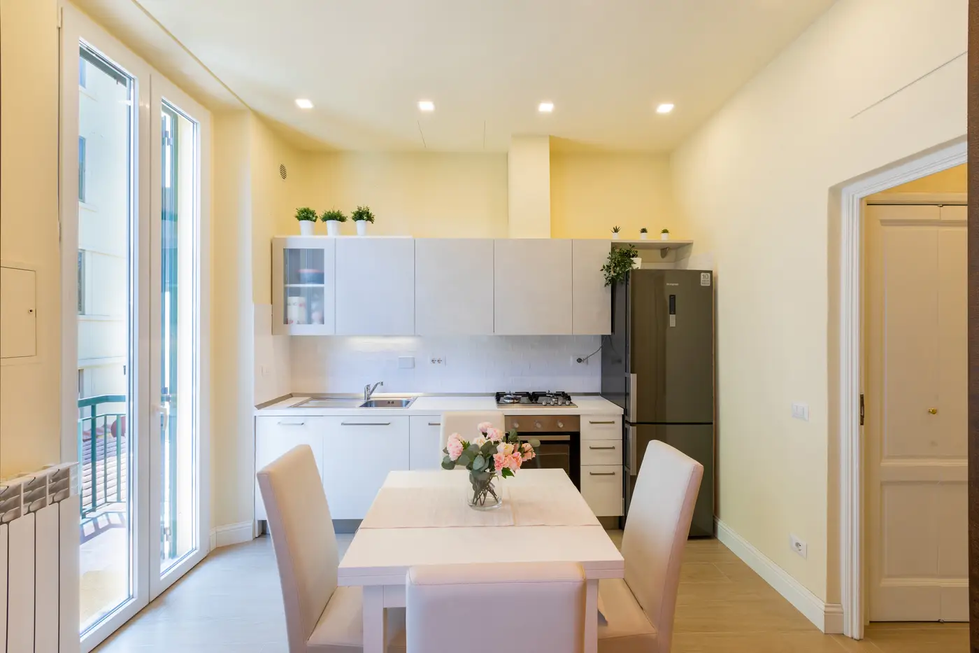 - Cucina open space ben attrezzata con tavolo da pranzo per 4 persone