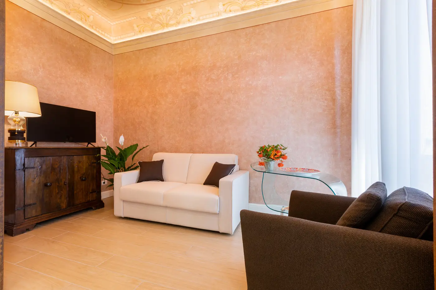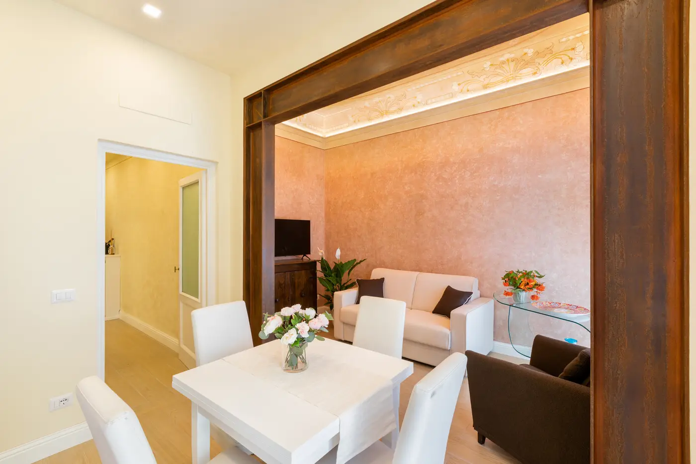 Copperstone by è un appartamento moderno e raffinato in un quartiere tranquillo ai piedi di Fiesole, vicino alle Cure e a Campo di Marte. Spazi ampi e ristrutturati uniscono tradizione e contemporaneità , con travi metalliche a vista e intonaco spazzolato che dona texture e calore. La posizione strategica permette di raggiungere facilmente lo Stadio Artemio Franchi e le principali attrazioni della città , offrendo un rifugio tranquillo e accogliente, senza rinunciare a stile e comfort.