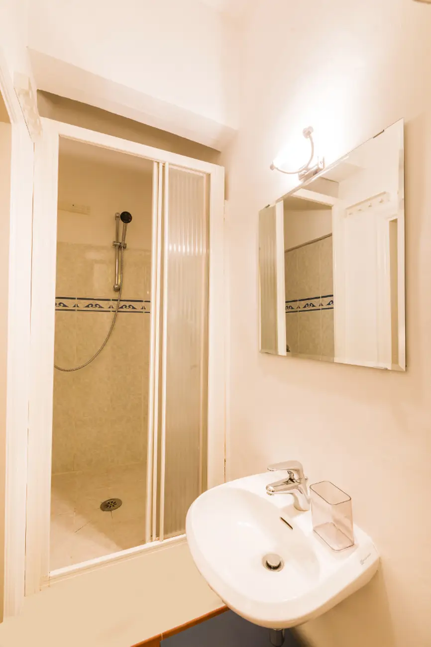 - Una camera matrimoniale con bagno privato completo di doccia, lavabo, bidet e lavatrice