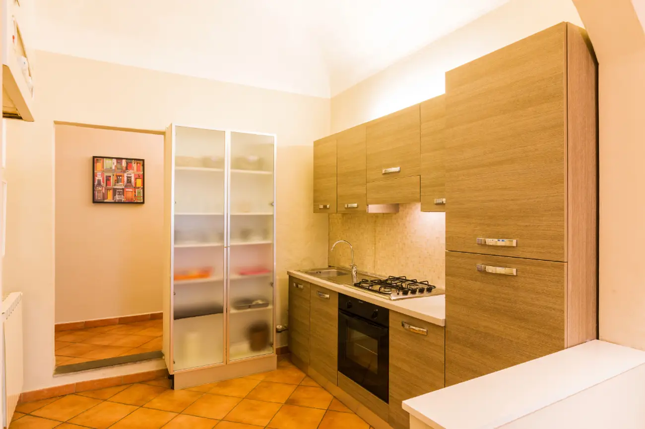 - Cucina open space completamente attrezzata con tutti gli elettrodomestici necessari