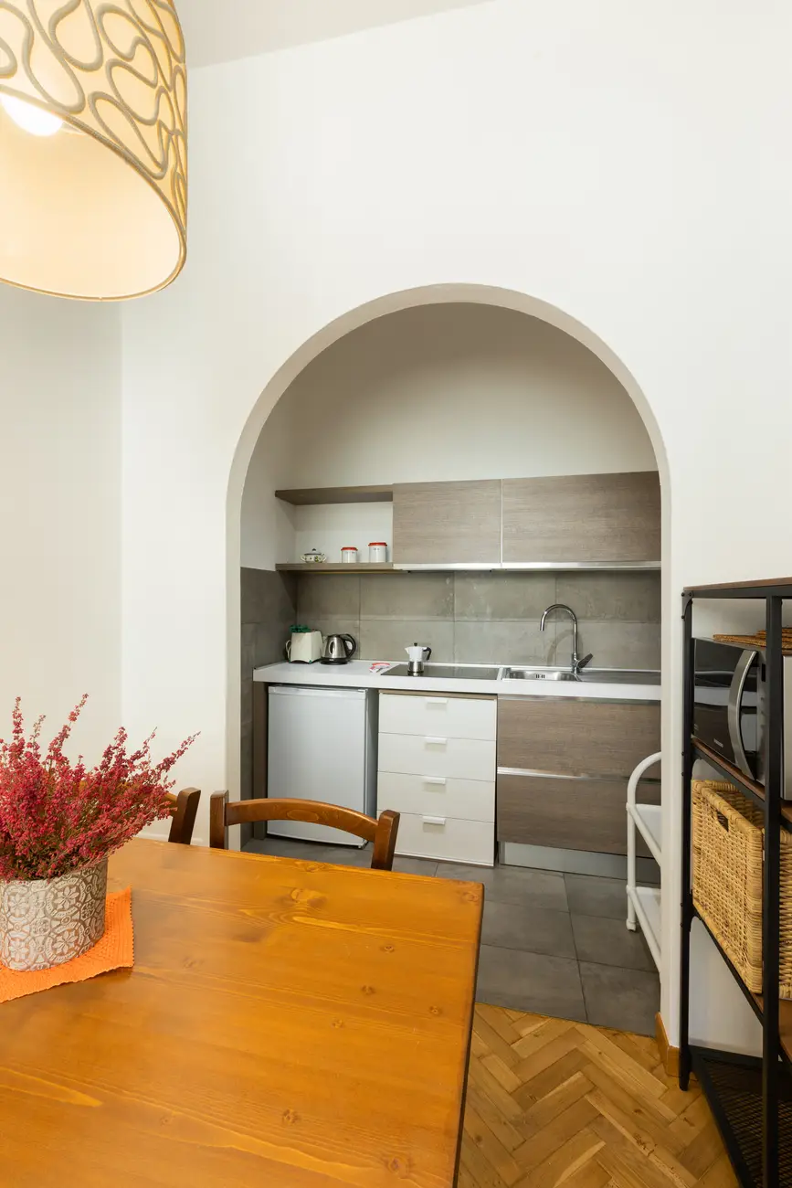 Il Vecchio Baule è un elegante appartamento fiorentino, ideale per coppie o famiglie, nel cuore della cittĂ . Recentemente ristrutturato con soffitti a cassettone e caldo parquet, l’alloggio promette un soggiorno indimenticabile. La posizione è incomparabile: Uffizi, Piazza della Signoria, Duomo e Santa Maria Novella sono a brevissima distanza a piedi. Attrezzato con ogni comfort, nel salone troverai l’antico baule, fatto a mano, che custodisce la magia e i ricordi dei tuoi viaggi.