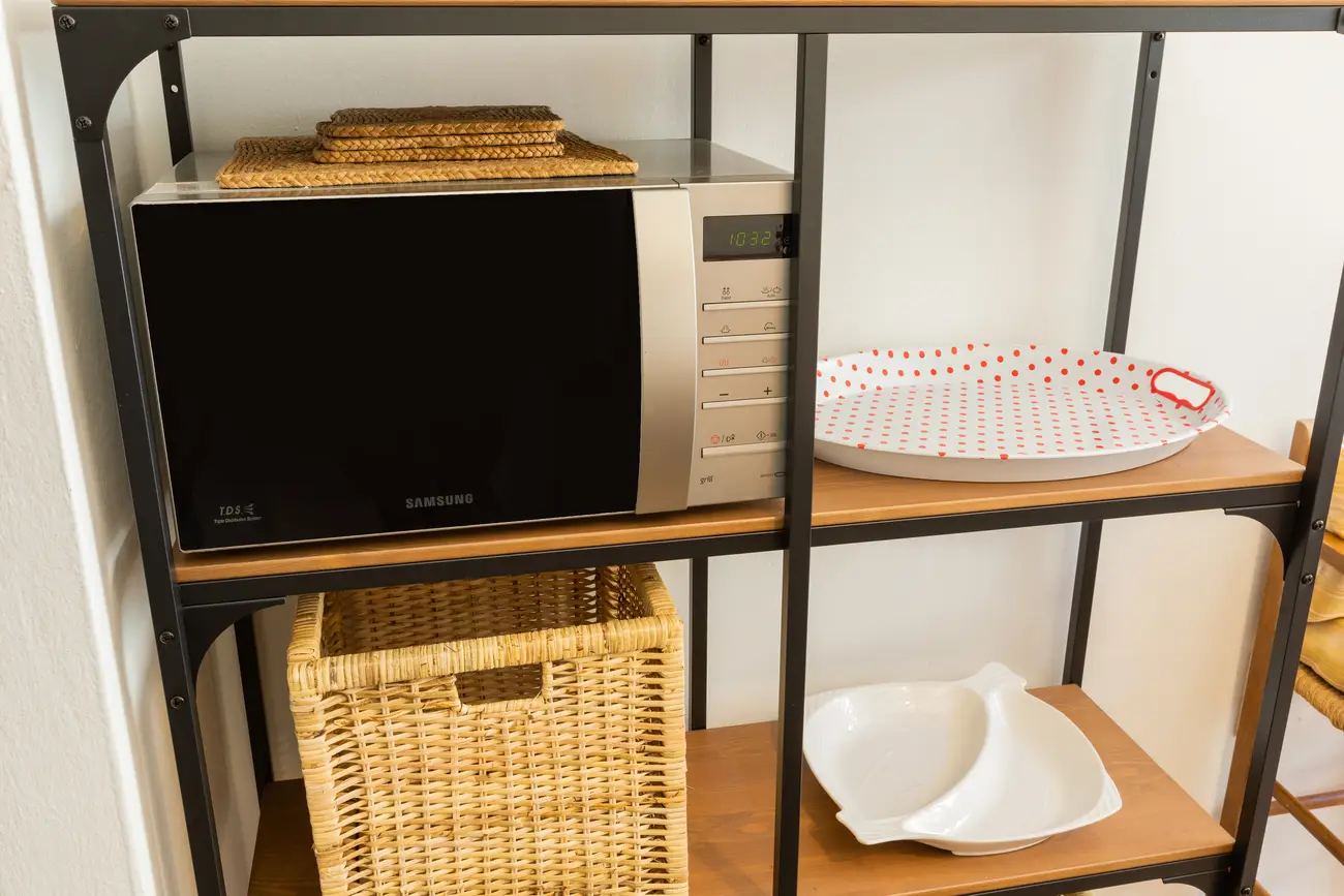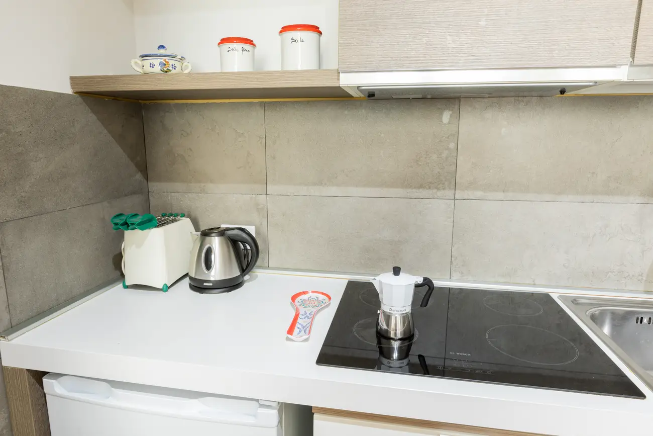- Cucina open space accessoriata con utensili, elettrodomestici, fornelli a induzione e tavolo da pranzo